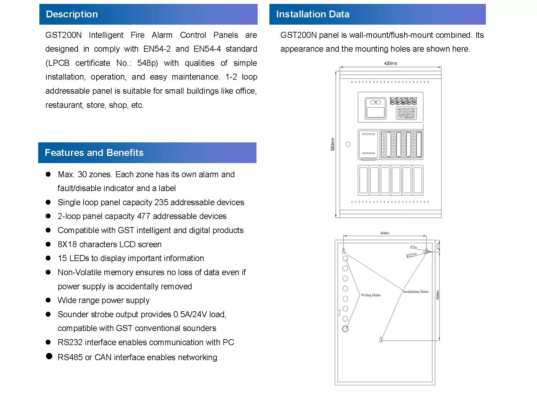 GST200N Series Intelligent Fire Alarm Control Panel